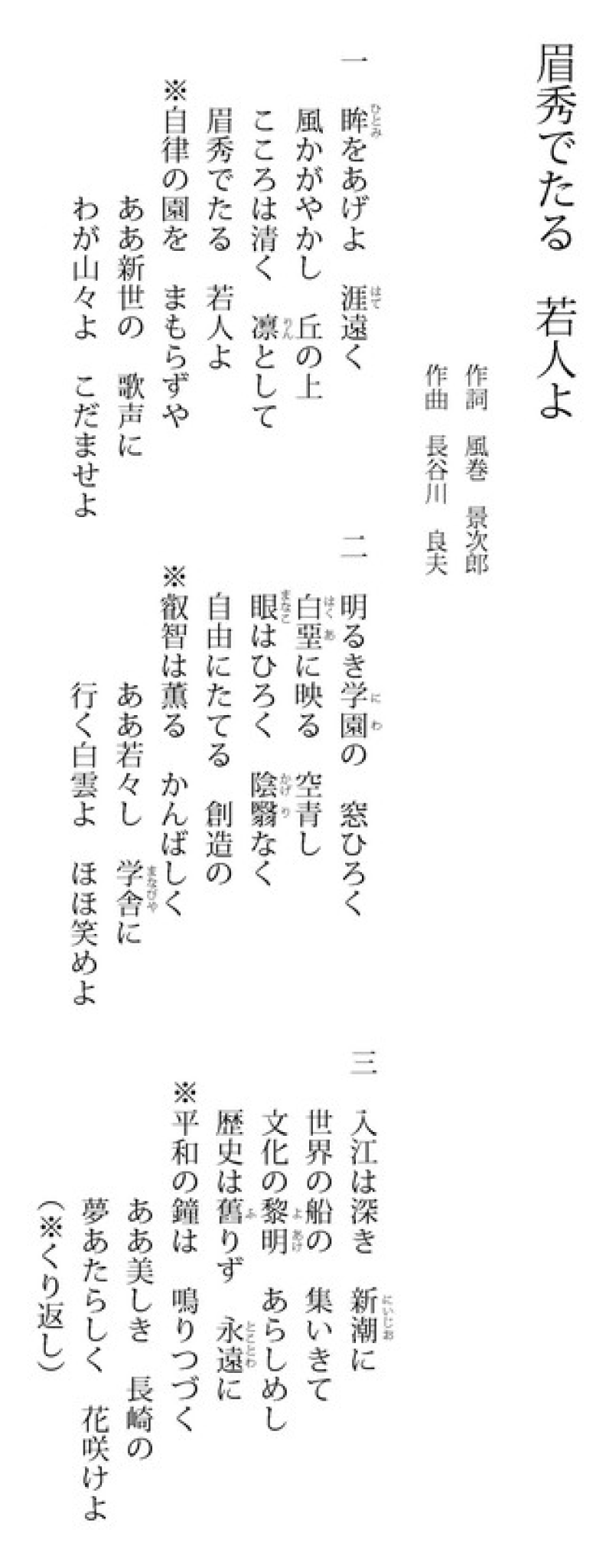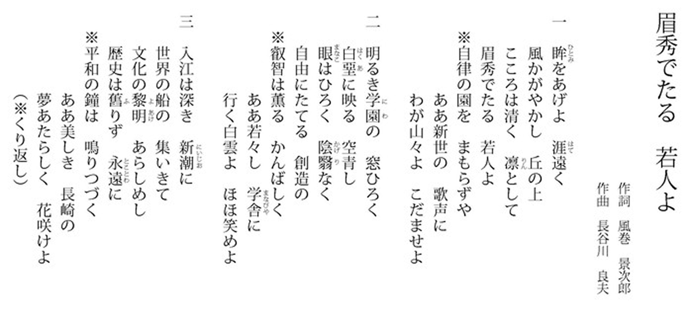 校歌は本校野球部が昭和26年甲子園に出場を機にその年の12月に制定された。