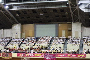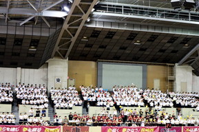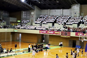 バスケットボール全校応援 2024年10月28日(月) 第77回全国高等学校バスケットボール選手権大会長崎県予選の決勝戦、全校応援を行いました。島原中央高校に58対62と惜しくも敗れましたが、会場は一体となって応援しました。 ◇全校応援の様子