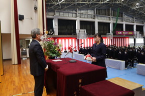 同窓会入会式を行い、同窓会より記念品を贈呈していただきました。