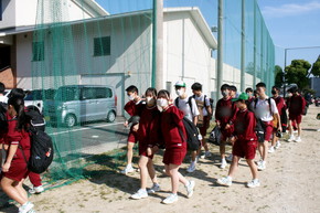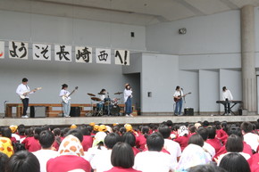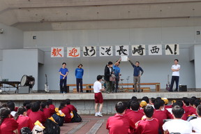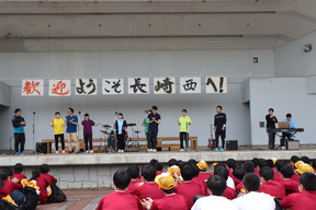 歓迎遠足 2023年05月08日(月) 4年ぶりに歓迎遠足(稲佐山)を実施しました。当日は天気にも恵まれ、稲佐山へ歩いて登りました。 歓迎行事や生徒会企画、クラスでの自由時間など大いに楽しみました。 歓迎行事の準備のため、生徒会役員や出演部活動の生徒は、先に登ります ◇歩いている様子 ◇歓迎行事の様子 新入生代表あいさつ 新転任の先生方の紹介 音楽部 吹奏楽部 ギター部 生徒会企画 ◇自由時間