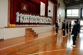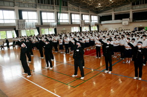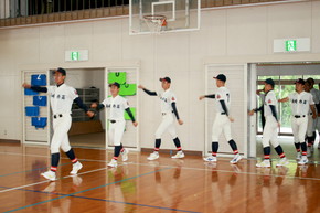 第104回 全国高等学校野球選手権長崎大会 壮行 2022年07月06日(水) 新型コロナウイルス感染防止の観点から、2・3年生は第1体育館 1年生は、第2体育館(リモート配信)に集まり、第104回 全国高等学校野球選手権長崎大会の壮行式を行いました。 1回戦は、7月9日(土)BigNスタジアムで、佐世保工業と対戦します。 応援団による説明 選手入場 生徒会長激励のことば 水球部・男子バスケットボール部有志による応援 選手退場