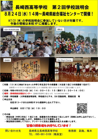 8月24日(水)第2回学校説明会を開催いたします。