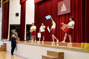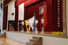 運動会実行委員による団の色決定セレモニーを行い、運動会のテーマが発表されました。