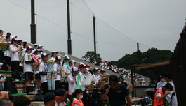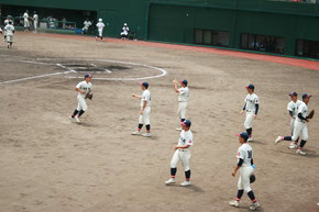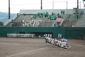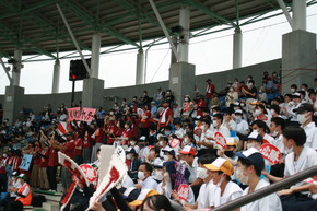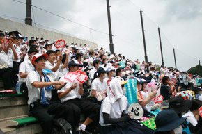 野球全校応援 2022年07月13日(水) バス21台を連ねて、スポーツパークいさはや第1野球場に全校応援に行きました。吹奏楽部の演奏もあり、全校一体となって応援しました。鎮西学院に3-0で勝利し、16日(土)スポーツパークいさはや第1野球場で3回戦(第2試合13:00開始予定)を戦います。応援よろしくお願いします。 ◇応援の様子 同窓会からのスポーツドリンクの差し入れ 吹奏楽部の演奏 ◇試合の様子
