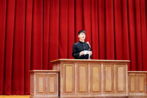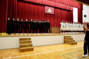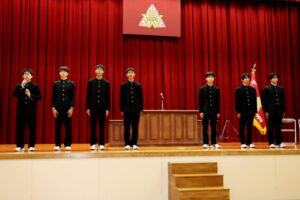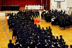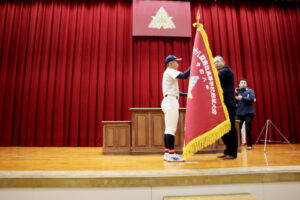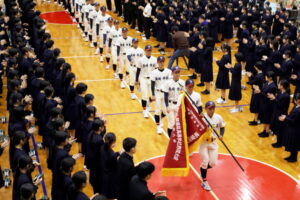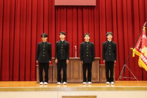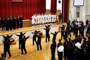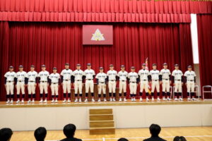 野球部選抜旗授与式及び春の全国大会壮行式 2026年03月03日(火) 野球部選抜旗授与式及び春の全国大会壮行式を行いました。 全国大会出場生徒入場 選抜旗授与 野球部主将挨拶 物理部 宇宙甲子園缶サット部門2025全国大会 第15回科学の甲子園全国大会 第12回 全日本ジュニア(U17)水球競技選手権大会(かしわざき潮風カップ) 第98回選抜高校野球大会 生徒代表挨拶 校長挨拶 応援 応援 校歌斉唱 校歌斉唱 校歌斉唱 選手退場