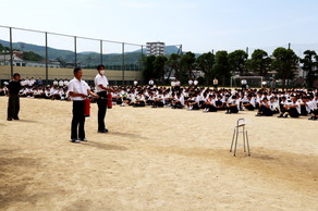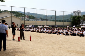 北消防署の方にきていただき、防災避難訓練を実施しました。