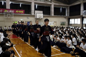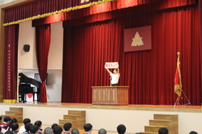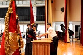 高総体 壮行式 2025年05月28日(水) 令和7年度 長崎県高等学校総合体育大会選手壮行式を行いました。 5月31日(土)より28種目に259名が参加します。応援よろしくお願いします。 選手入場 選手入場 選手紹介・決意表明 団旗授与 校長挨拶 選手代表宣誓 応援団による応援 校歌斉唱 選手退場