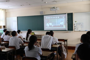 体育館外壁工事のため、リモート配信で高総体報告会及び表彰伝達式を行いました。